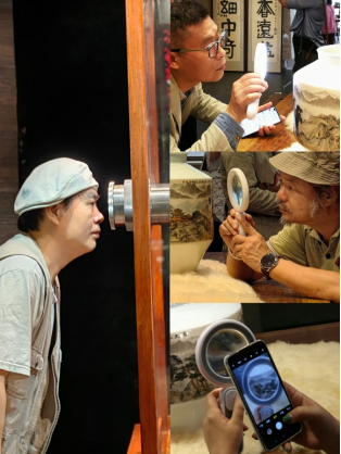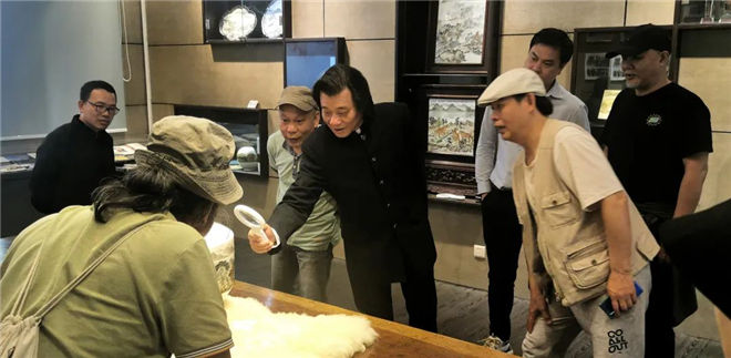 团员们在大师仅凭肉眼裸视创作、每平方厘米书写繁体汉字100多个;并以字组画的精美艺术品前驻足,在借助放大设备的帮助下细细欣赏。更为难得是王芝文大师在百忙之中亲自接待和陪同艺术行旅的艺术家们,并向艺术家们介绍微书创作过程和交流创作心得。“文字细中奇,芝蘭香远益”王芝文大师“华夏一绝”的陶瓷微书艺术作品让同行的艺术家们大开眼界。