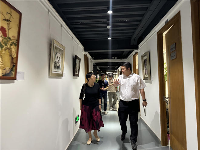 其后省工艺美术有限公司董事长 成立锋 和省工艺美术协会常务副秘书长 赵亮亮 带领下参观了工美港国际数字创新中心园区、广东工美办公区域、珍品馆等。