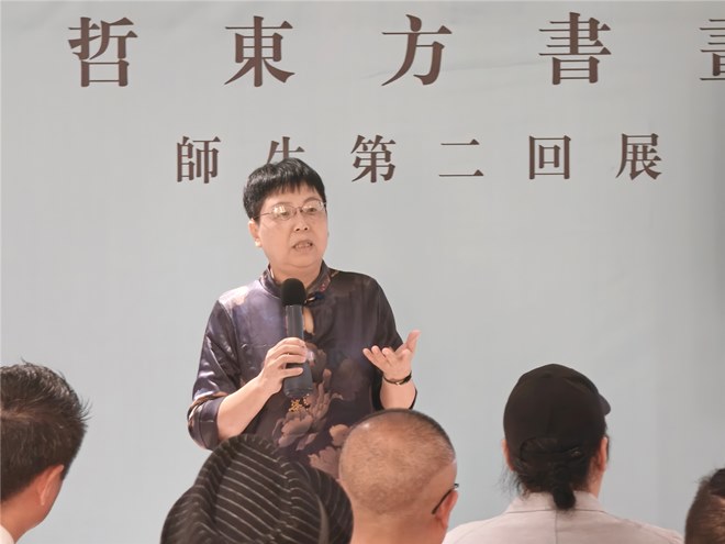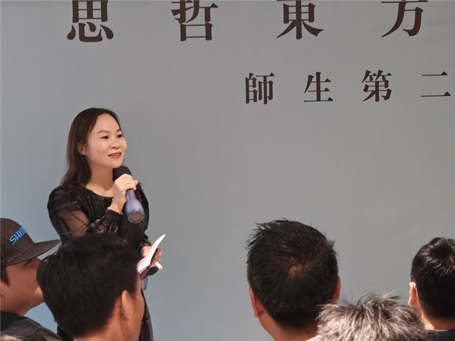 协会副会长/思哲设计创始人 罗思敏 以《我与书画陶瓷艺术有个约会》为题,风趣地向大家讲述了自己是如何与书画陶瓷艺术结下不解之缘,感谢这段缘分让他明白人有自己的热爱才能抵过枯燥的工作时光,追求梦想的过程其实也是精彩人生的高光所在。最后他鼓励大家继续寻求为之热爱人生意义,同时还感谢大家对思哲设计乔迁新址的祝福。