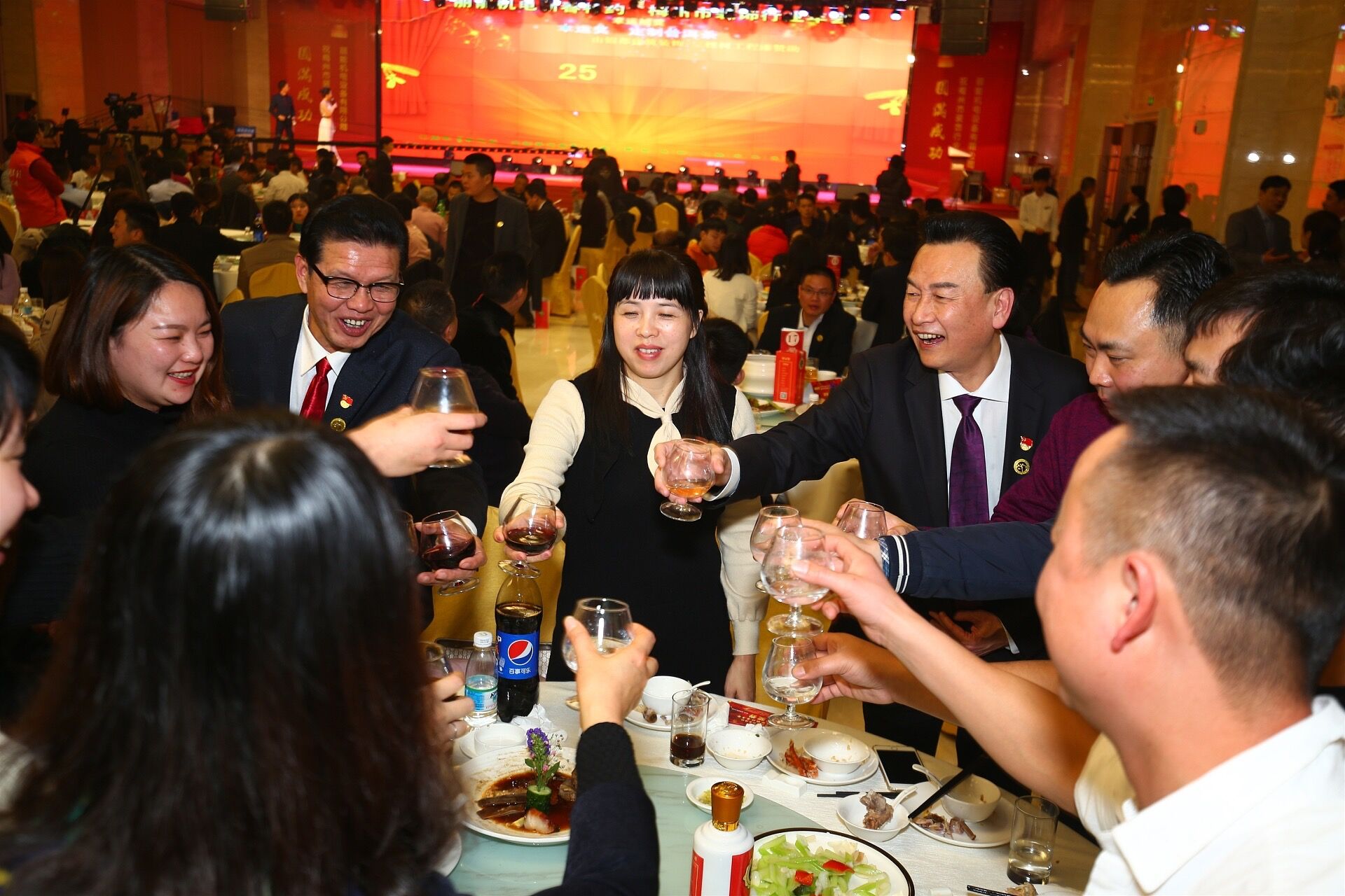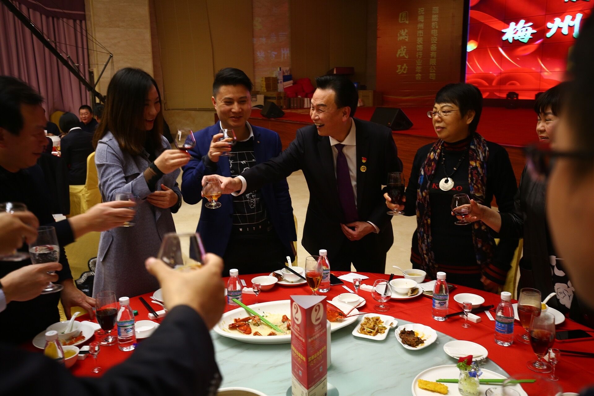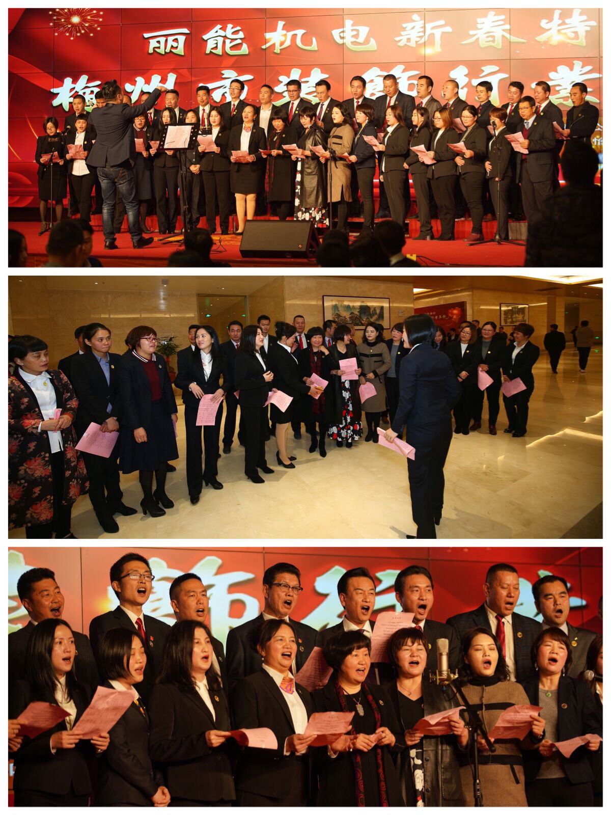 晚会现场一片红红火火,钟国威会长气场强大!会员们的大合唱唱出了行业的气势!客家特色的节目乡情满满!