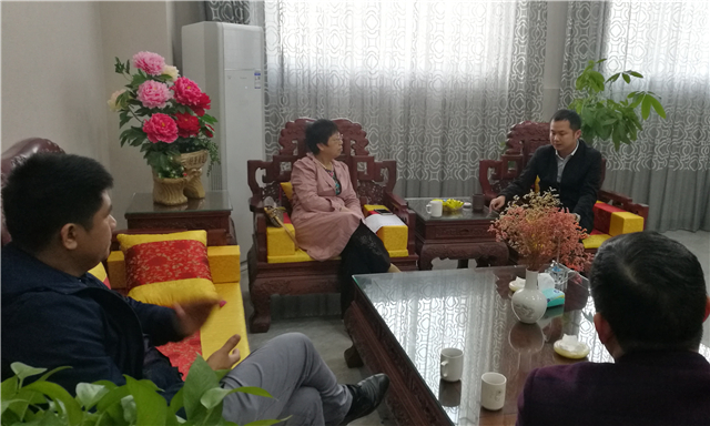 胡小梅会长于座谈会的前一天12日下午到达英德,随即在肖俊杰会长的企业办公室与英德市装饰行业协会的部分班子成员召开热烈交谈。