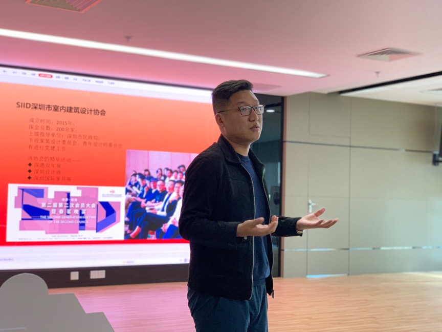 SIID深圳市室内建筑设计协会秘书长杨宇介绍了协会的工作方向,在青年设计师居多和“设计之都”的城市氛围的背景下,协会应该多发展会员,在会员服务、政策帮扶、职能转型、扶持设计创新创业等方面多下苦功,归根到底应该给予设计企业实质性回馈,帮助它们拿到更多订单以及与品牌相匹配的设计费。