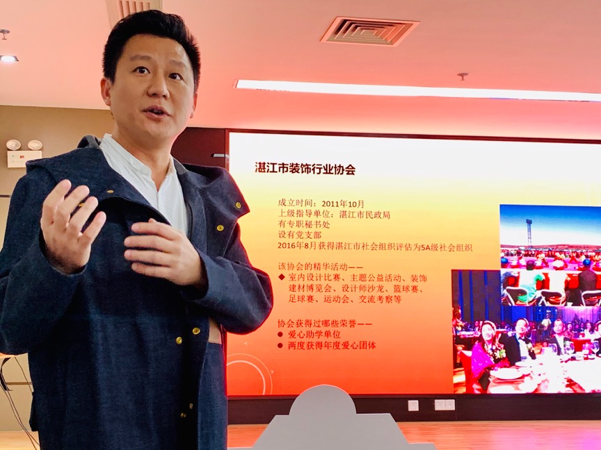湛江市装饰行业协会常务副会长黄晓文强调,打造地方文化特色是协会必须做的。协会常年通过湛江的本土杂志推广当地的文化和设计力量。并且通过与政府部门紧密沟通联动,与跨行业如旅游业界跨界交流互通有无,在异业激发出装饰行业的价值。接着秘书长冼汉文补充了协会的概况和日常工作开展的成效。