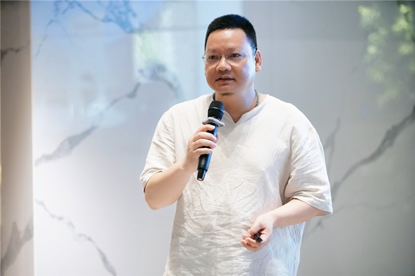 本次活动承办协会--佛山市顺德区室内设计行业协会会长、尚和装修设计工程有限公司总经理、设计总监严军(顺德)致欢迎词并做顺德在地设计--库灵图华南运营中心项目分享。