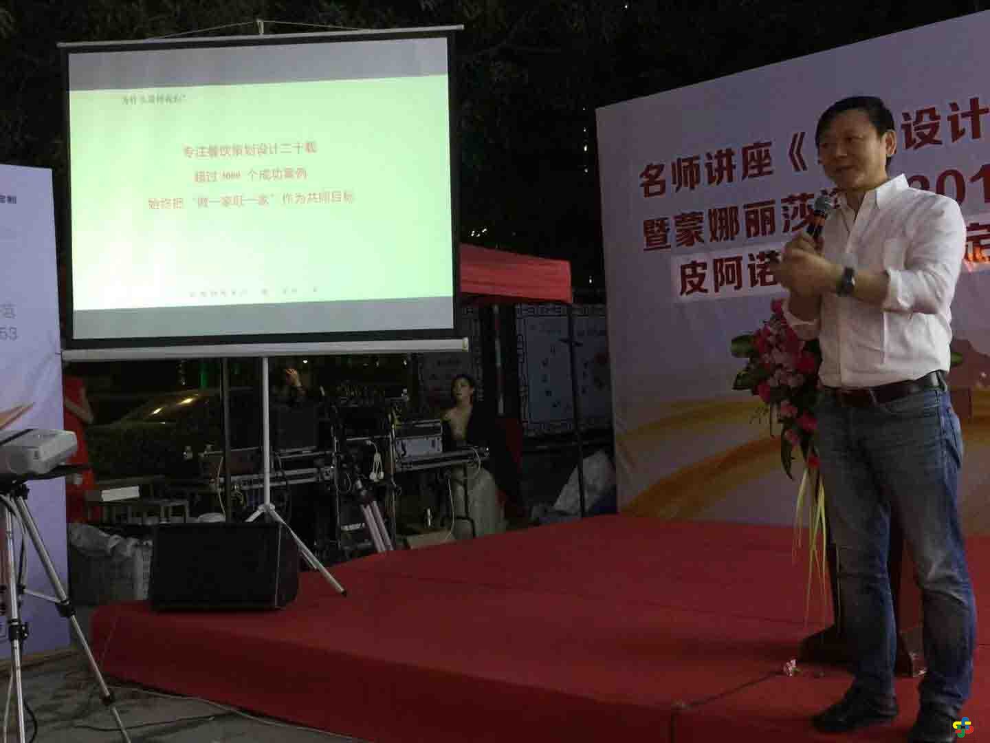 在本次名师讲座中,集美山田组总设计师、华南农业大学环境设计系主任吴宗建老师的演讲内容主要分为二部分:(一)从理念的角度主讲了:什么是“可持续发展设计”、“餐饮业的三大时代”、“餐饮可持续经营”等话题。分析了餐饮设计行业不同时代的特点和思想,提出了环境、社会、经济三者之间互依互存、互相影响的关系;(二)从专业技术角度主讲了:餐饮空间的全案策划、场景设计、照明设计、以及新会陈皮村项目中“竹”材料的创新应用。