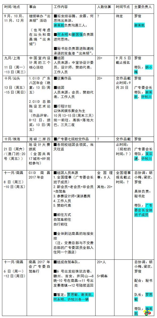 附表:9月、10月、11月活动时间表和会长们的分工安排
