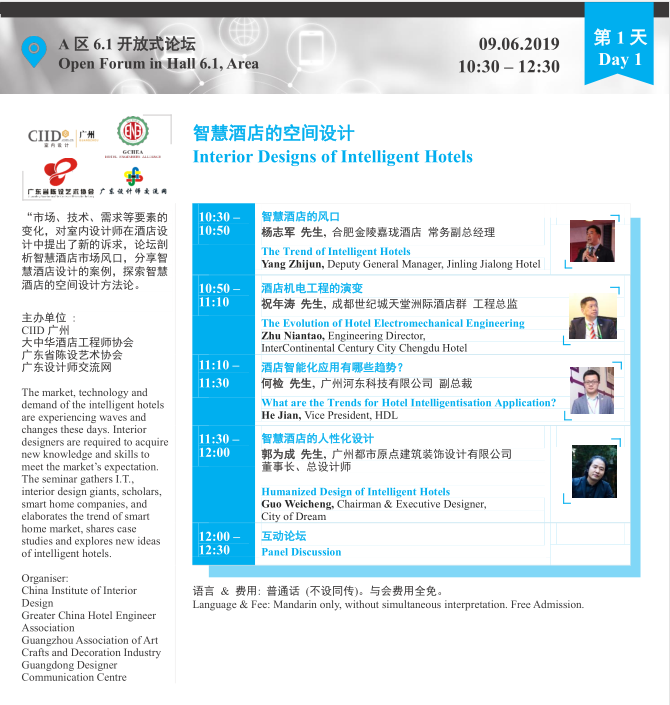 10:30 “智慧酒店空间设计”论坛(6.1馆论坛区)