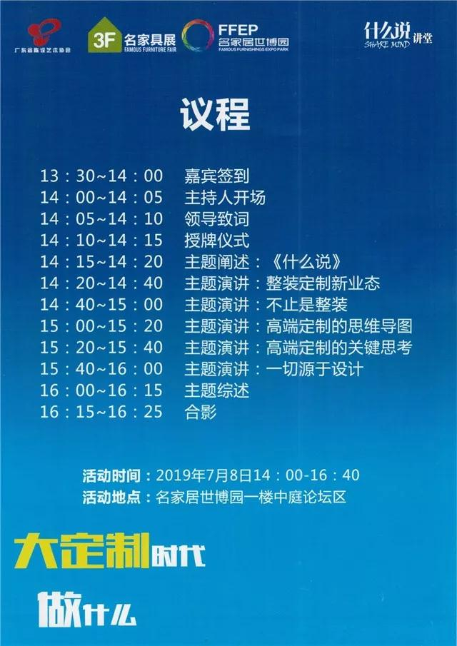 7月8日下午,由广东省陈设艺术协会、国际名家具(东莞)展览会联合主办的“什么说”讲堂第二讲在首届东莞国际设计周名家居世博园一楼中庭正式开讲。