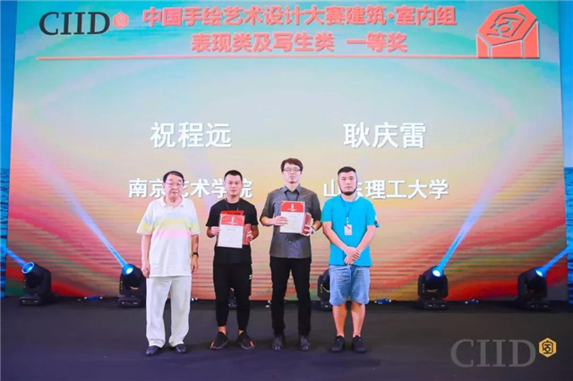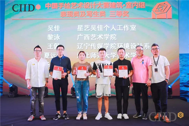 本届手绘大赛奖项设置分两组:成人组和学生组;每组分设计表现类和写生类两个类别,共计四个类别。颁奖典礼为分获四个类别一、二、三等奖的作者和导师奖与组织奖获得者颁发了奖杯和证书。