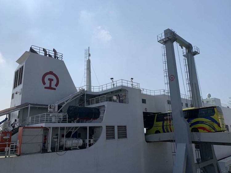 从石梅湾出发一路顺畅来到铁路轮渡码头,人和车即将搭轮渡跨过琼州海峡到徐闻。