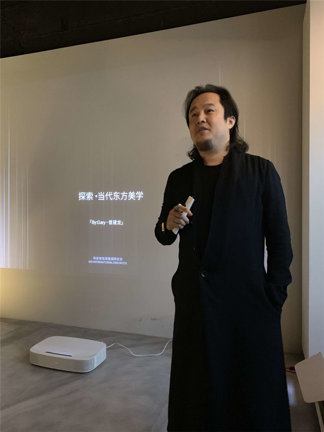 曾总开始分享,先做了自我介绍,然后从参与《梦想改造家》的设计案例讲起,最后介绍了自家与国外品牌公司合作设计、生产的家具、灯具、瓷砖、布艺以及艺术品等的跨界产品。