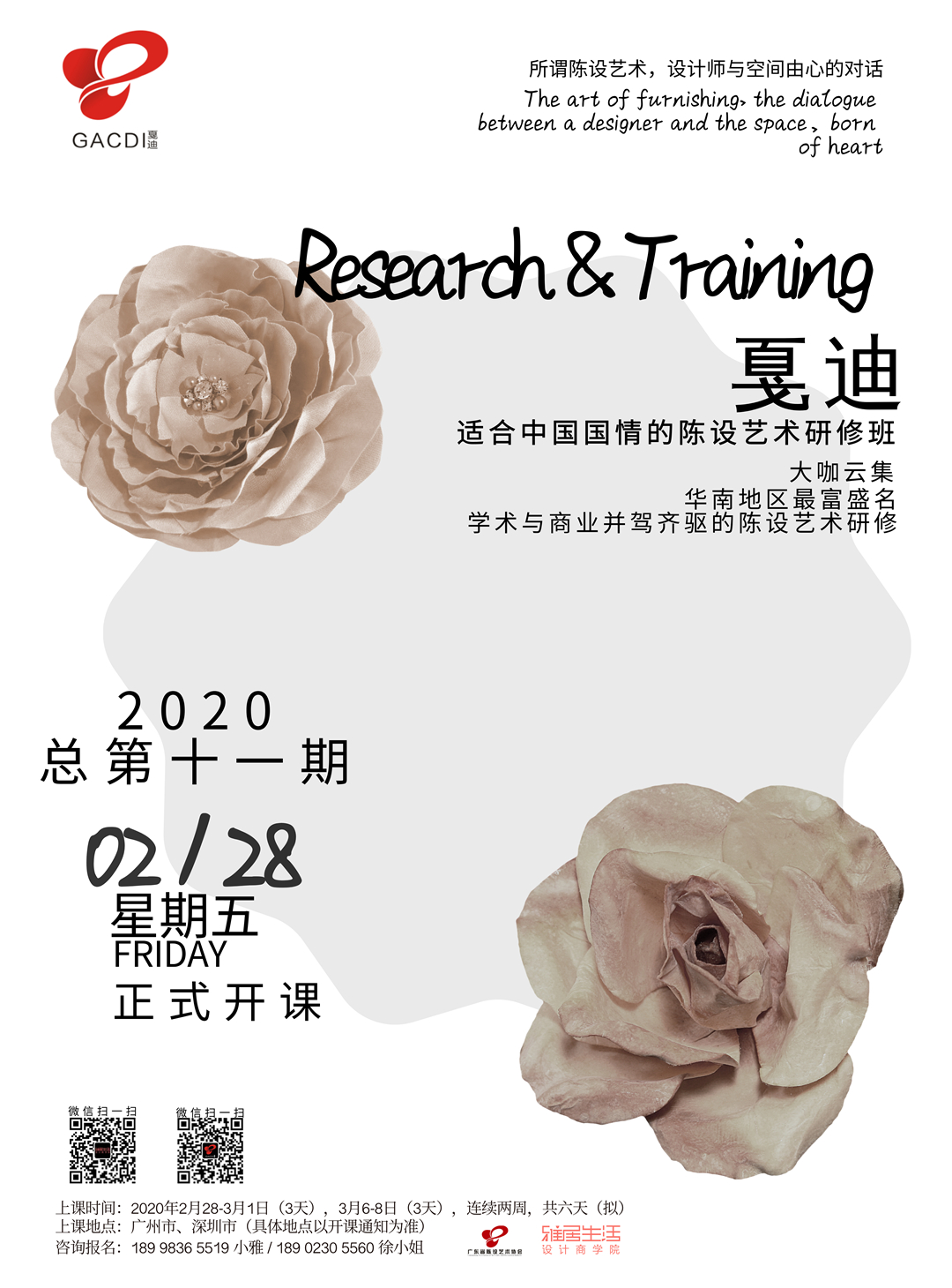 第十一期“戛迪-陈设艺术设计研修班”将与雅居生活联合举办,继续秉承与时俱进,紧贴行业脉搏,通过课程输出新观点新思路。