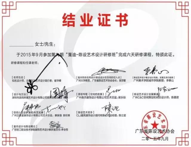 ●考勤学习结束并完成考核项目,发给广东省陈设艺术协会培训证。