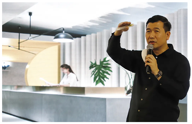 林镇以《西形东韵,城市新贵》阐述本次话题。西方讲究形态,比例、构成,色彩;东方主张感知、韵味、情绪。他通过自己所做的案例,诠释了东西方的良好结合,成为一种新得设计方向标。