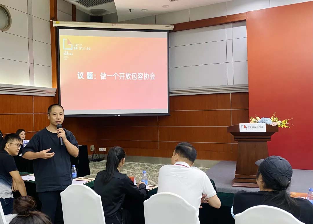 列席代表协会会员/广州美术学院 陈国辉老师首先从他策展评论、文旅项目活动及学术方向角度出发,认为协会需要拓展圈层,保持一个开放的心态来联合联合各行业、各协会、各平台以及政府层面的连接。同时树立协会品牌,以重复发生的、长期的、持续的进行,以一种有效的形式增强协会的凝聚力和粘合度。持续为协会注入新鲜血液可以让协会更好地做大做强,在这其中高等院校的有着很大的发展潜力!