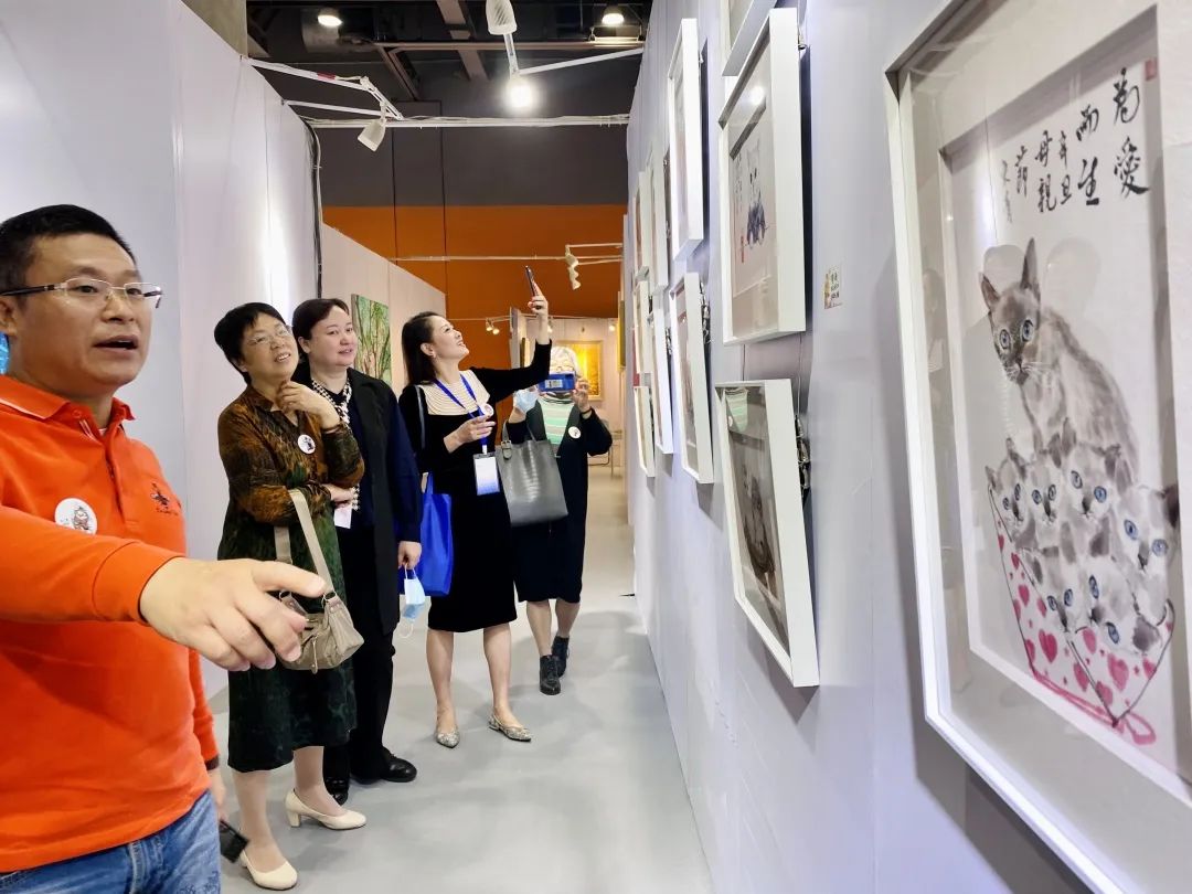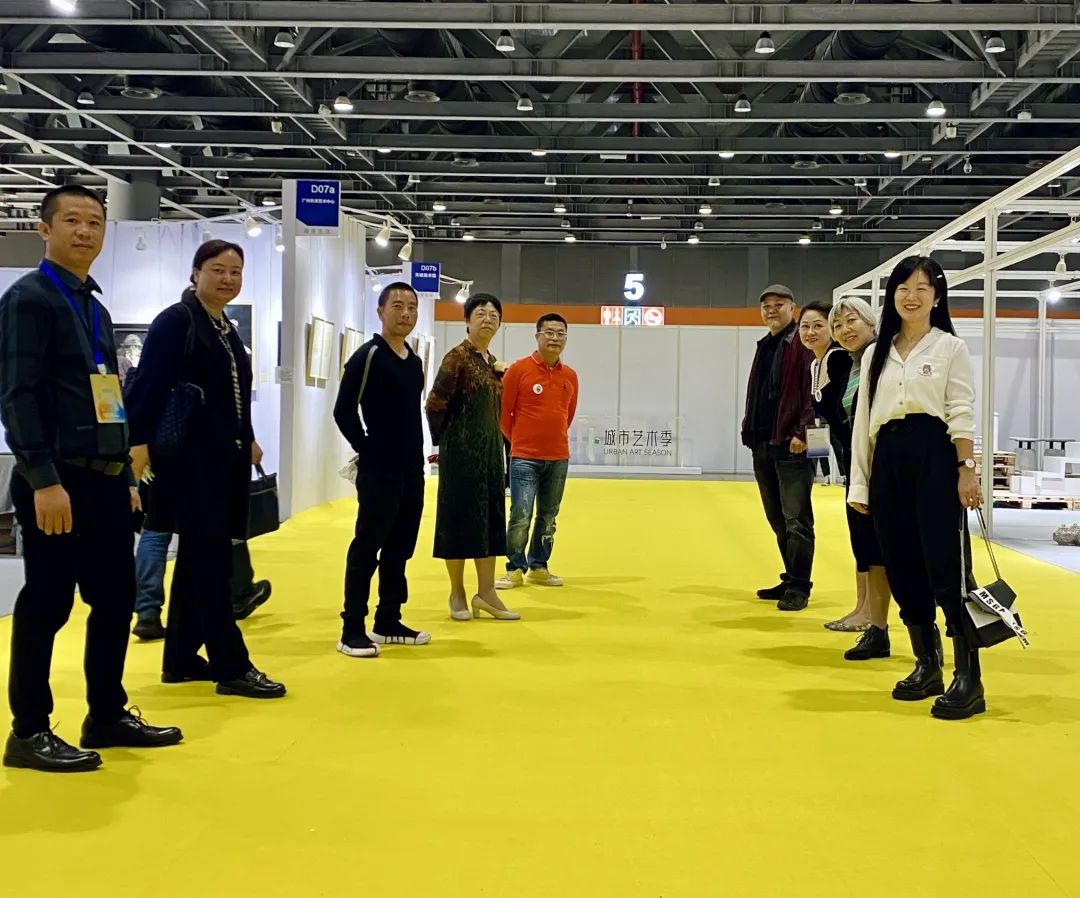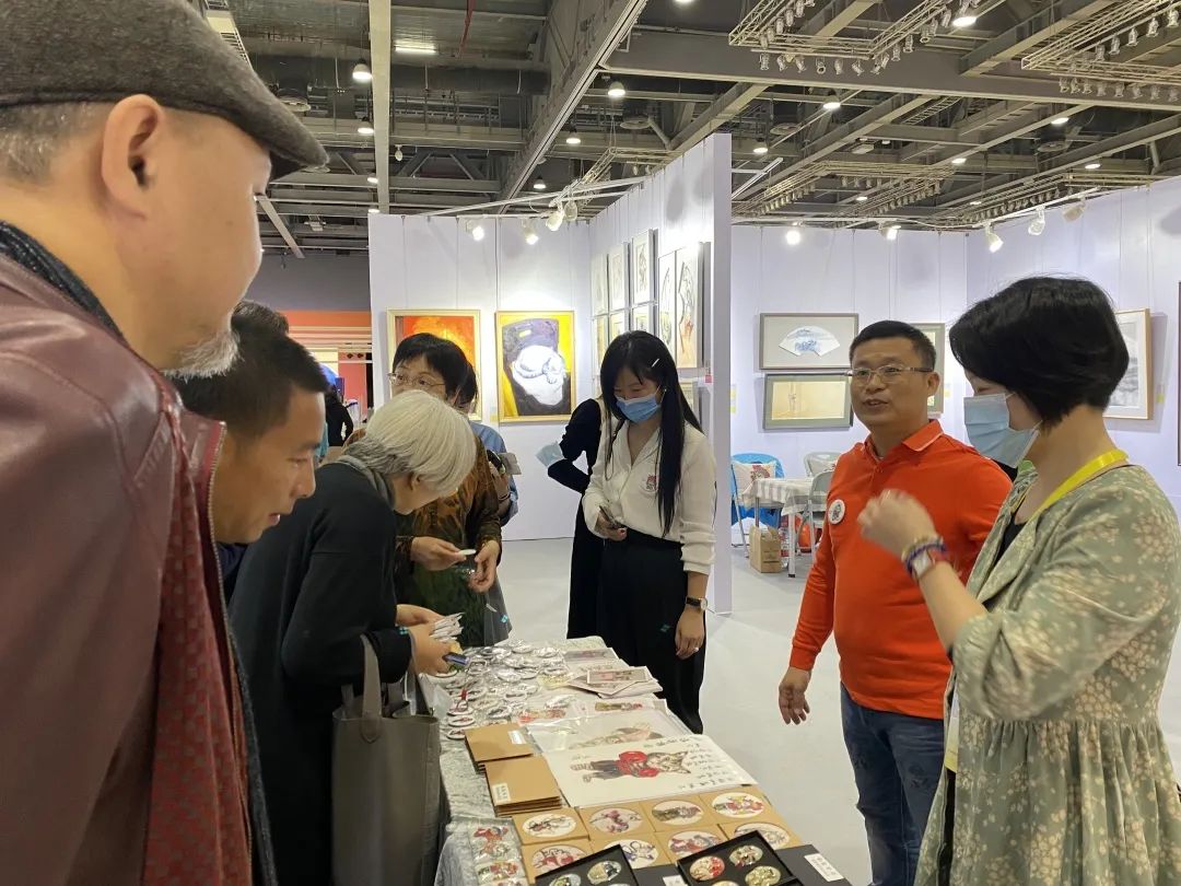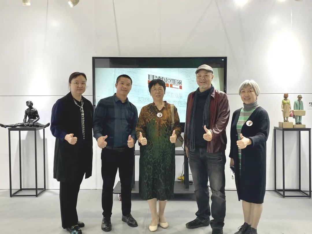 协会会长胡小梅及协会副会长/公共艺术分会会长梁永标与参展会员相聚“博览会”