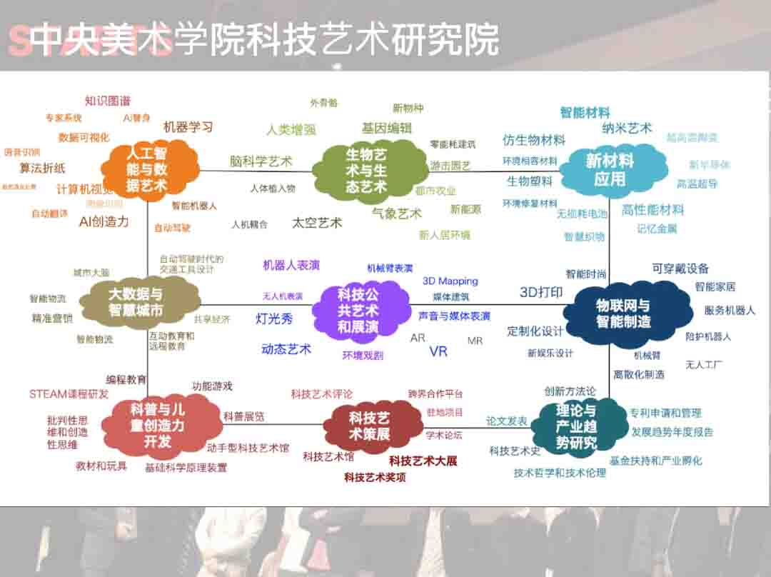作为实验艺术界领域的邓碧文教授 为我们介绍了全球科技与艺术研究的权威机构,以及这类跨媒体教育的设置。关于科技与艺术的关系,邓老师指出,科技艺术由三词构成,包括科学/技术/艺术,技术是作为科学与艺术的链接,实际上,我们在做科学与艺术的思考时,其最终极的目的是哲学思考:”我们是谁,我们从哪里来,将到哪里去”。所以,用来联结科学与艺术中的技术一定是当下最前沿的、最新、应用最广的新型技术。
