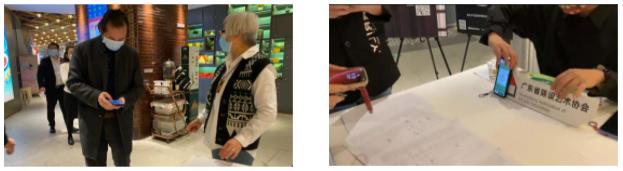 到场签到的会员们积极配合防疫“亮码”行动