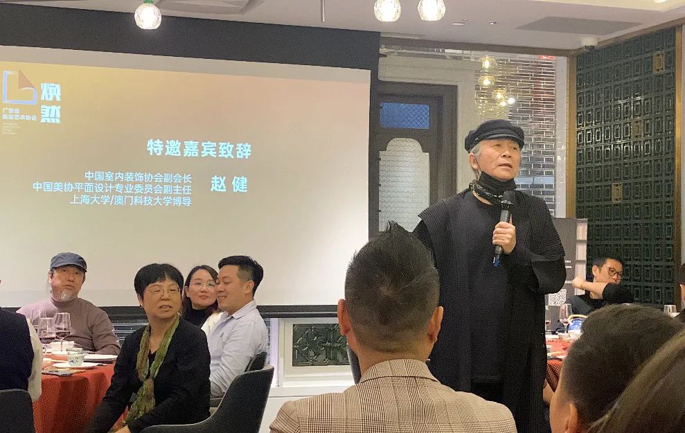 年会开场伊始,特邀嘉宾/中国室内装饰协会副会长/中国美协平面设计专业委员会副主任/上海大学及澳门科技大学博导 赵健老师为大家致以真挚的新年祝辞,还分享了自己对于2022年行业发展趋势的精彩见解,让在场来宾收获极大的启发,激起掌声一片。