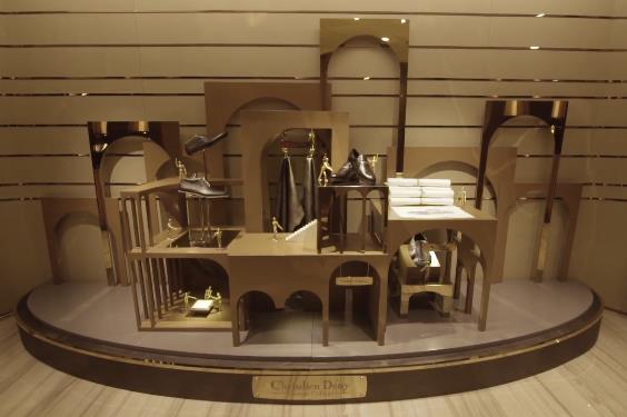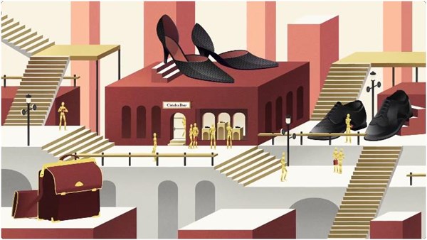 “CHRISDIEN DENY”主营高级男鞋等产品,石川借着品牌20周年全国主题巡展,为品牌设计巡展装置,用小金人代表工匠,还原制鞋的过程,并将这个构成组合成一双“大鞋”。让品牌能够适应新的消费市场,焕发新的生机。