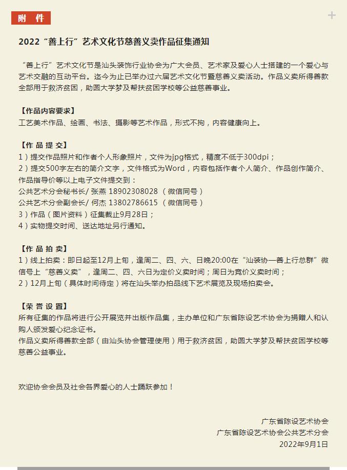 【附件:2022“善上行”艺术文化节慈善义卖作品征集通知】▼