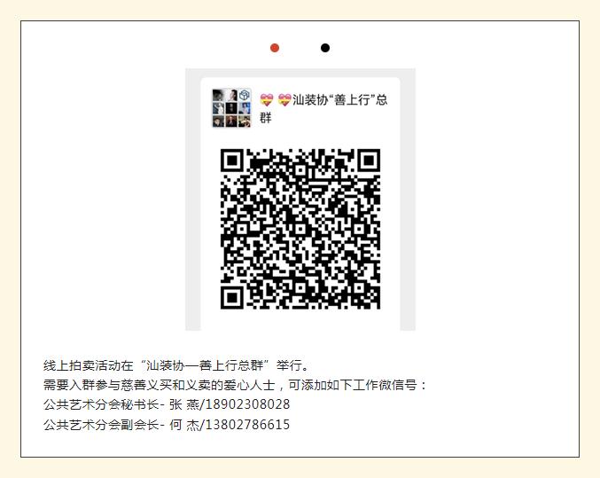感谢各界艺术家及协会会员朋友的爱心捐赠!欢迎希望捐款认购艺术品的协会会员及社会各界有爱心的仁人雅士联系公共艺术分会秘书处进群,参与这次义卖和义买的公益慈善行动。