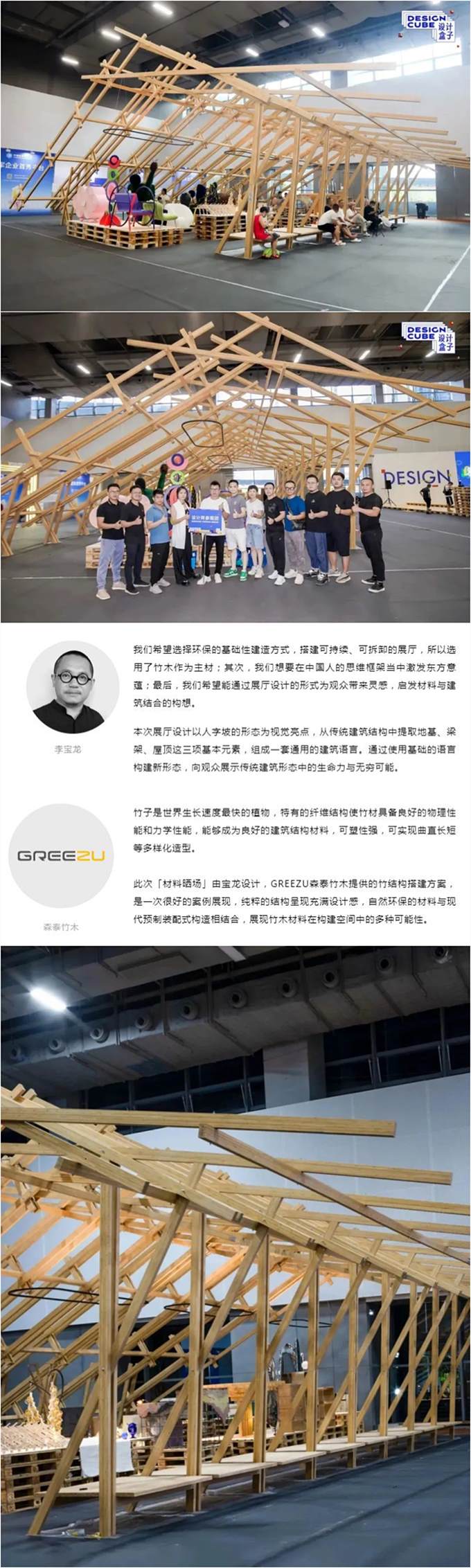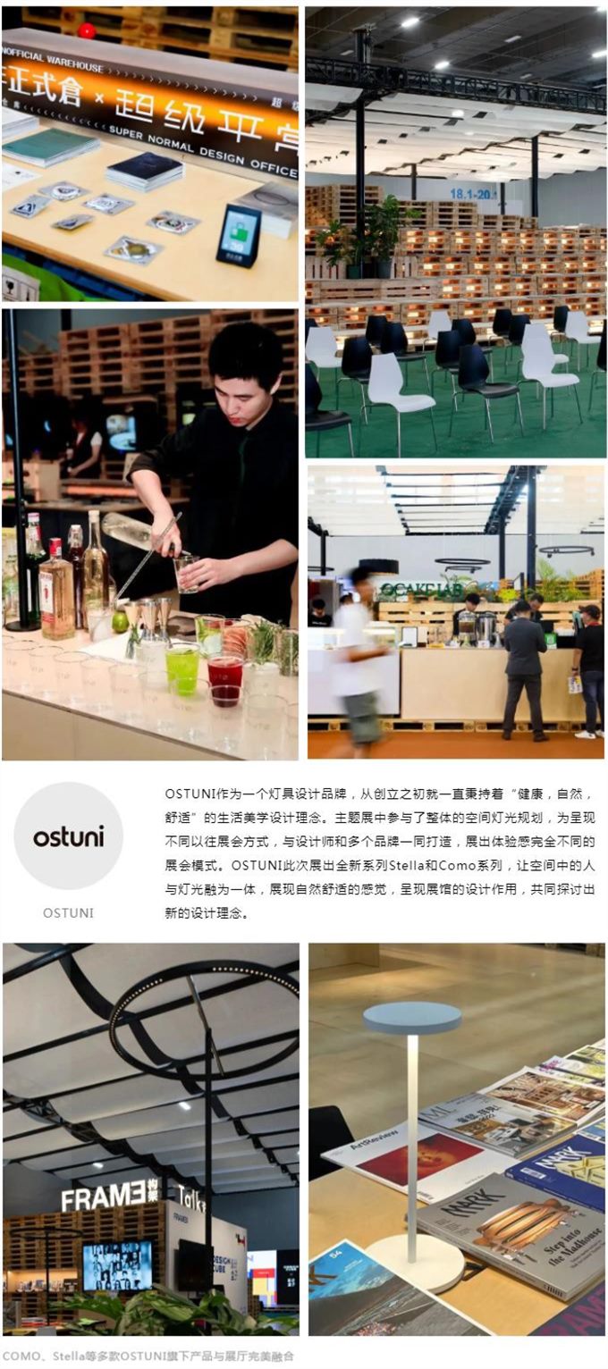 本次展览的另一大亮点——「材料晒场」设计原创实验室,由绽放设计与森泰竹木合作完成展厅,OSTUNI的灯光方案,点亮展厅。
