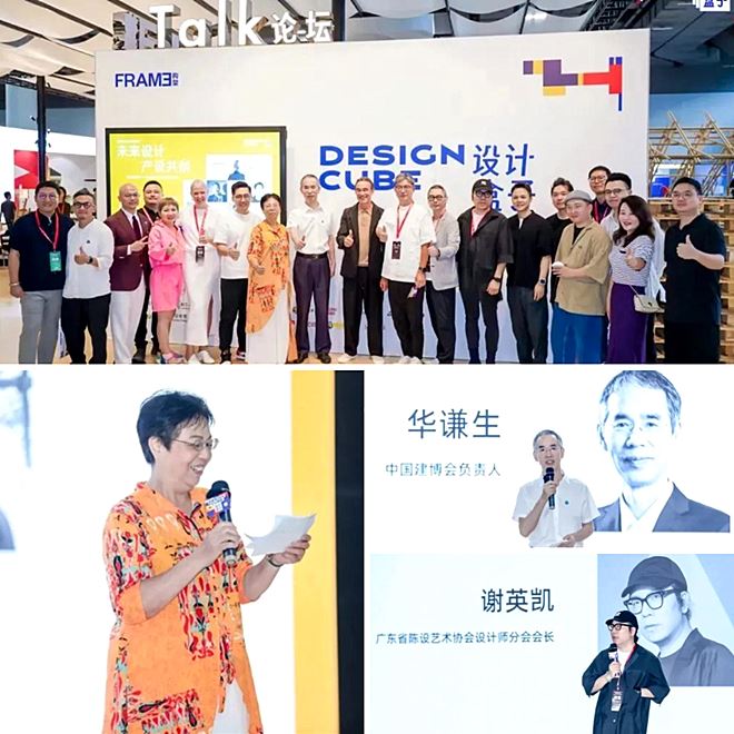 7月8日,「设计盒子」展厅开幕式上,中国建博会负责人-华谦生、广东省陈设艺术协会会长-胡小梅、设计盒子主策展人广东省陈设艺术协会设计师分会会长-谢英凯、深圳市室内建筑设计行业协会会长-于强,分别上台致辞,为观展观众介绍本次展览的亮点与策展理念,并向协助本次展览落地的各方团队致谢。在各界嘉宾共同见证与期待下,「设计盒子」产设融合馆宣布正式启动!胡小梅会长在「设计盒子」展厅开幕式致辞中,首先感谢了中国建博会(广州)提供了宝贵的机会,让此次“展贸+设计(协会)+材料商”共同合作呈现的「设计盒子」成为现实。对于展贸平台来说,她认为协会所具备的丰富设计师资源及蓬勃成长的设计力量,是展现展会平台“设计生态圈”魅力、赋能展贸质量和水平的坚实后盾。而协会与深圳市室内建筑设计行业协会组成强有力的双协会设计团队,在本届中国建博会(广州)上所打造的近万平方米的展陈空间,胡小梅会长表示,这不仅是一个一体化的设计项目,更是呈现广东和深圳两大中国设计高地城际交流、价值共创的优秀范例。为此,她希望本次「设计盒子」能成为“设展商”三方持续合作的开始,愿设计创意在展贸平台上持续大放异彩!