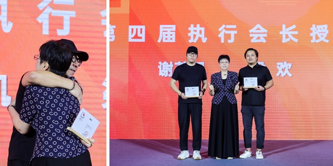 对于全新任期的协会工作畅想,胡小梅会长表示协会将继续秉持“专业•责任•整合•发展”八字宗旨,随后向在座来宾介绍执行会长的设立意义,并邀请二位执行会长谢英凯及梁欢一同上台与众多来宾见面,她认为协会未来在两位兼具行业影响力和协会运作实力的后备力量加持,定能以更饱满的热情、更务实的作风加持协会高质量的发展,让协会成为设计师之家!
