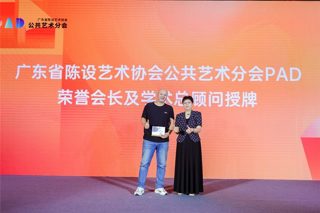 胡小梅会长为公共艺术分会荣誉会长及学术总顾问 梁永标 颁发聘任牌。随后接荣誉会长梁永标之手为协会公共艺术分会新任会长 何礼 颁发聘任牌,寓意分会接力棒的传承,在总会指导下,不断为空间室内设计师串联起泛艺术泛设计力量的资源及市场!