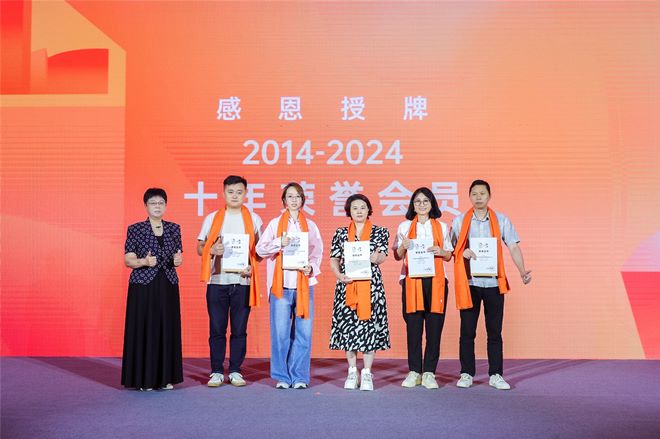 协会的成长离不开每一位协会会员和行业朋友的鼎力支持,有了大家的同舟共济才有协会今天的成绩,所以在当晚典礼上,由协会会长胡小梅为2014-2024的“十年荣誉会员”感恩授牌环节。