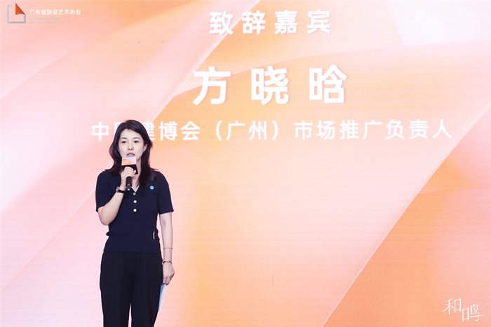 晚宴中,中国建博会(广州)市场推广负责人 方晓晗 女士 率先致开场词。他高屋建瓴地勾勒出设计与产业融合的宏大图景,让在场众人对行业未来的发展充满期待。作为连续四年支持协会的行业顶级平台,中国建博会的助力无疑为协会的发展注入了强大动力。