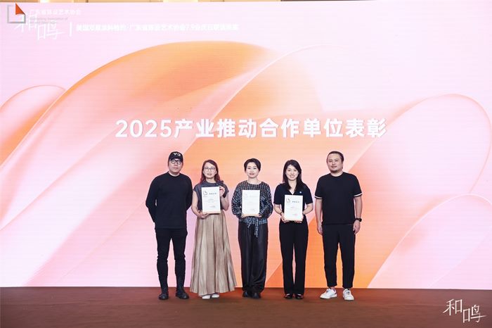 广东省陈设艺术协会会长 胡小梅 女士的致辞饱含深情,她的话语中流淌着对行业的赤诚以及对协会发展的坚定信心,让协会晚宴现场迎来了荣耀时刻,首先为 “2025 产业推动合作伙伴” 颁发荣誉表彰,美国邓恩涂料、中国建博会(广州)、瓦瑟系统门窗等单位上台领奖,以表彰他们对协会发展以及产业融合所做出的卓越贡献。充满了家的温暖,也让在场的会员们感受到协会这个大家庭的凝聚力与向心力。