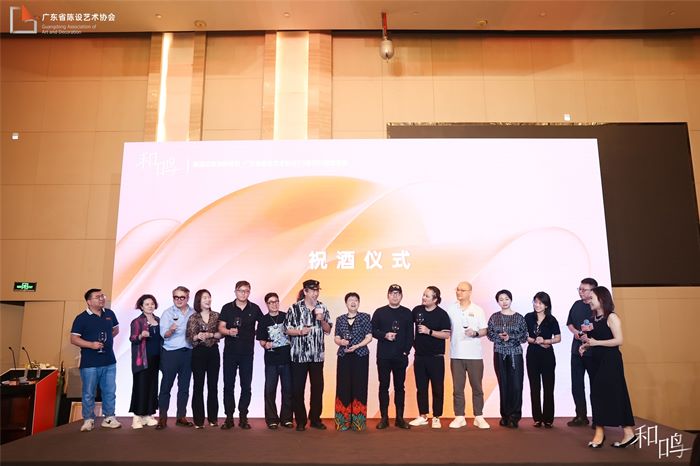 随后在主持带领下,台下台下全体嘉宾共同喊出 “设产和鸣,共创共赢” 的口号,将晚宴的气氛推向高潮。在激昂的音乐声中,大家共同举杯,为广东省陈设艺术协会 “7.9 会庆日” 成立诞辰干杯,为所有同仁的携手同行干杯,为行业更辉煌的明天干杯!