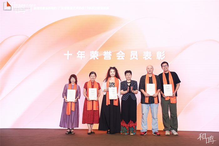 今晚的重中之重是向十年如一日陪伴协会成长的多位会员颁发感恩牌匾,他们是:广州市山田设计工程有限公司、广州市柏舍装饰设计有限公司、广州市纺织服装职业学校、广东文艺职业学院以及广州东它池文化艺术发展有限公司。
