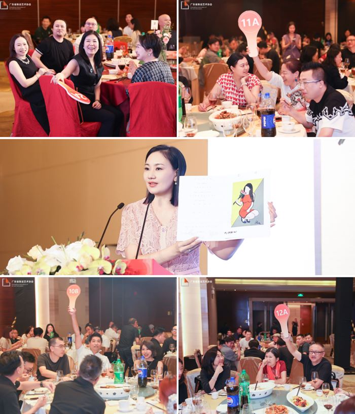 祝酒仪式后,晚宴迎来特别的彩蛋环节。由协会 PAD 公共艺术分会主办,联合PAD一群才华横溢的艺术家,精心挑选了六件艺术品!拍卖活动由协会副会长单位代表/广东方园时尚雕塑有限公司营销商务总监 赵娮 女士担任拍卖师。