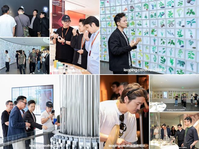 在GDA副会长 郑铮的带领下,设计师们参观了全国首座近万平方米的现代香专业博物馆——雪蕾香氛博物馆,项目共六层,除了科普香氛的相关历史和知识外,更设置了非常多可交互的装置,给整个参观过程增添了满满的趣味性。